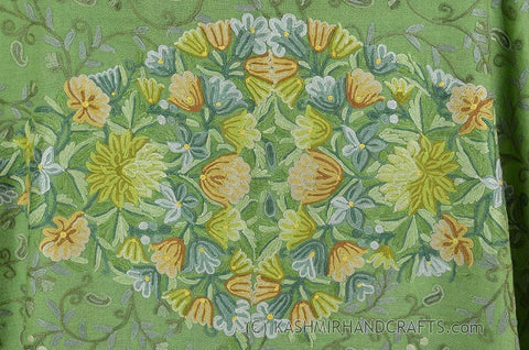 Lime Green Floral Kashmir Shawl Hand Embroidered Suzani Needlework Wrap 27x76"