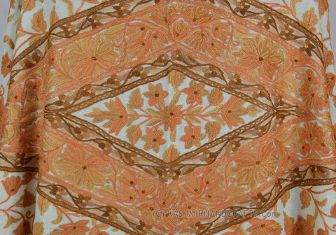 ivory cream floral kashmir shawl hand embroidered Suzani Needlework Wrap 27x76"