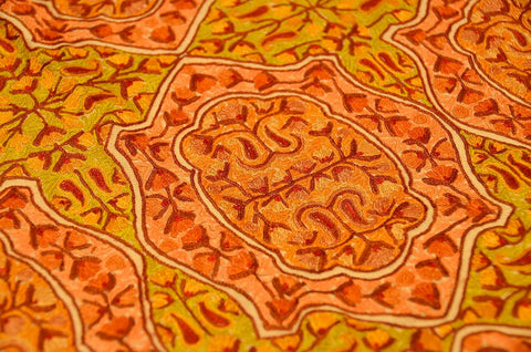 Goldenrod Jamawar Kashmir Shawl Hand Embroidered Suzani Needlework Wrap 27x76"