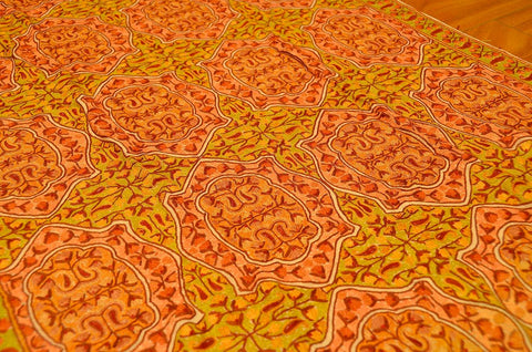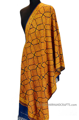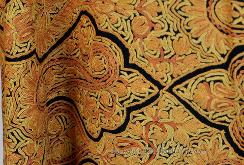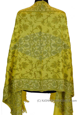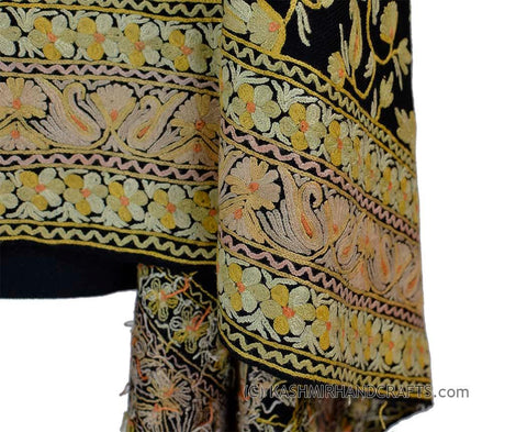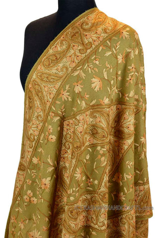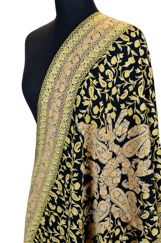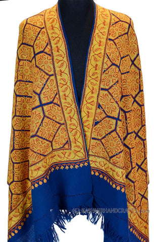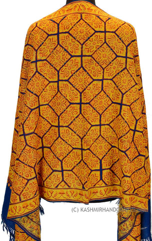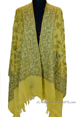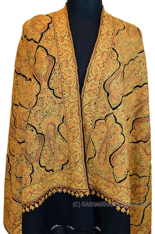 Yellow Gold Shawl Kashmir Jamawar Handembroidered Suzani Needlework Wrap 27x76"