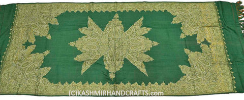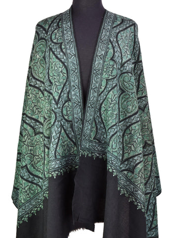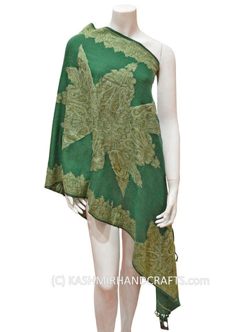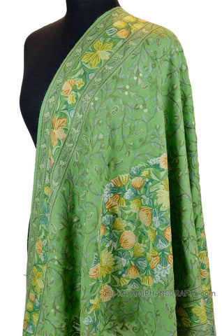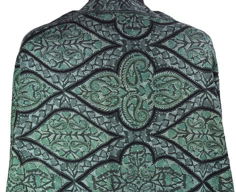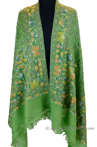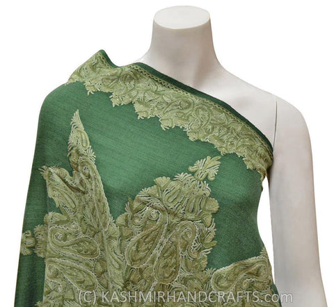 Jade Green Floral Kashmir Shawl Hand Embroidered Suzani Needlework Wrap 27x76"