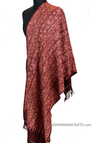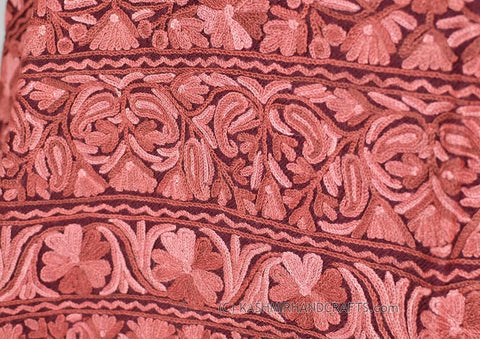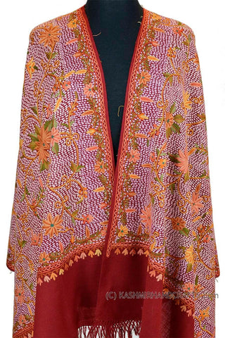 Royal Floral Burgundy Red Jamawar Kashmir Shawl Hand Embroidered Suzani Needlework Wrap 27x76"