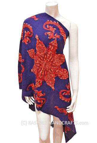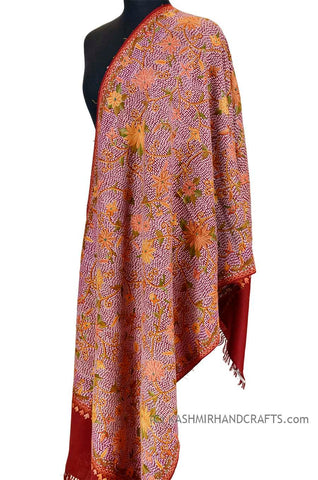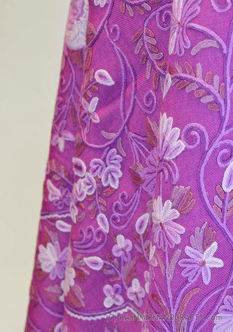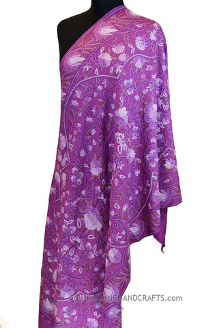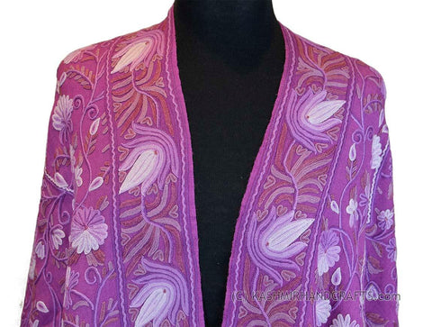 Purple Floral Kashmir Shawl Hand Embroidered Handloom Suzani Needlework Wrap 27x76"