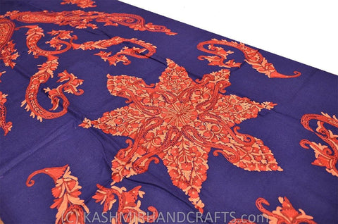 Kashmir Navy Red Shawl Floral Paisley Hand Embroidered Suzani Needlework Wrap 27x76"