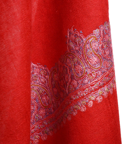 Royal Kalamkaar Red Jamawar Kashmir Shawl Hand Embroidered Suzani Needlework Wrap 27x76"