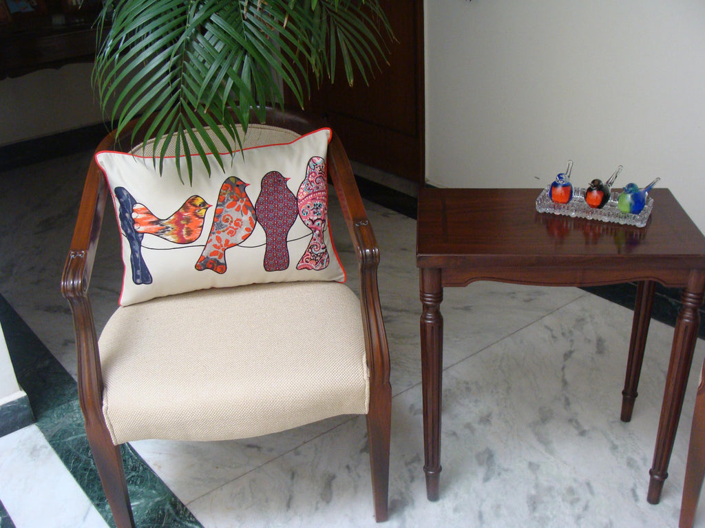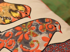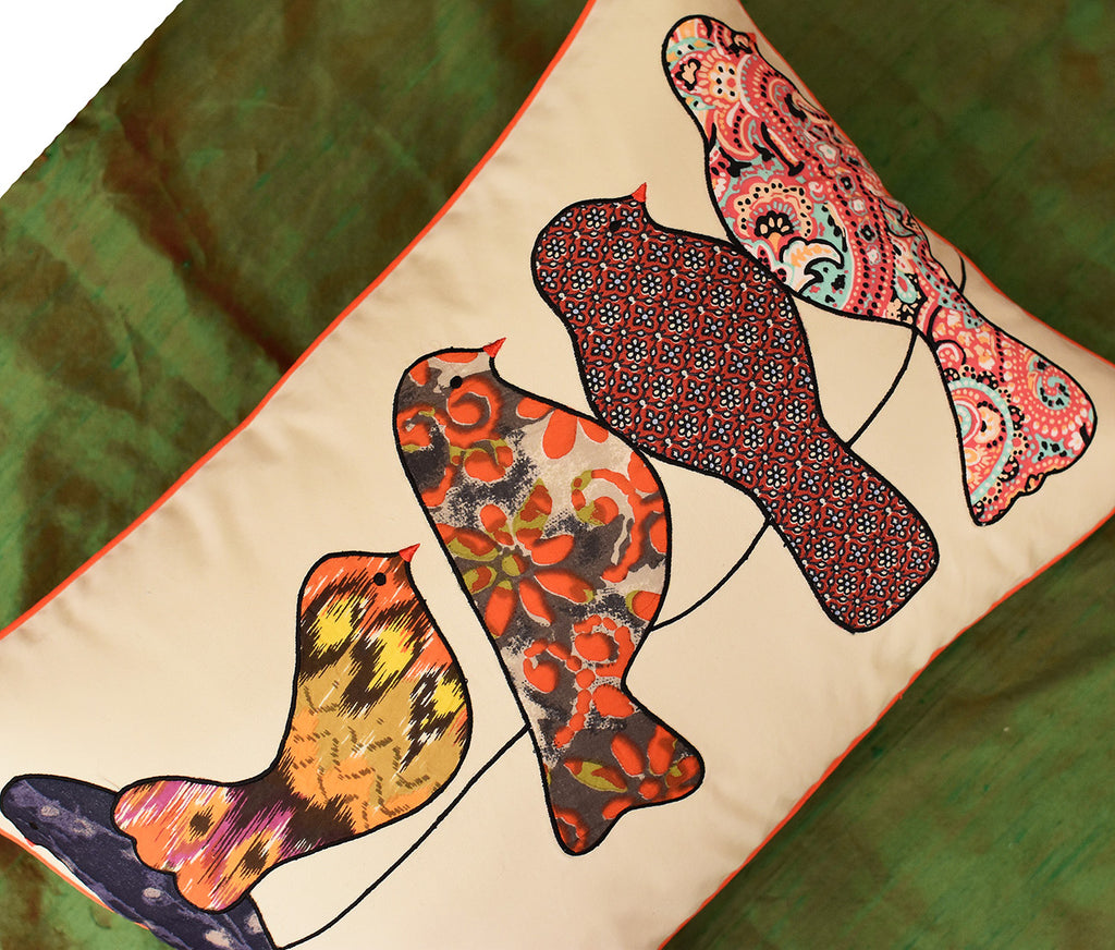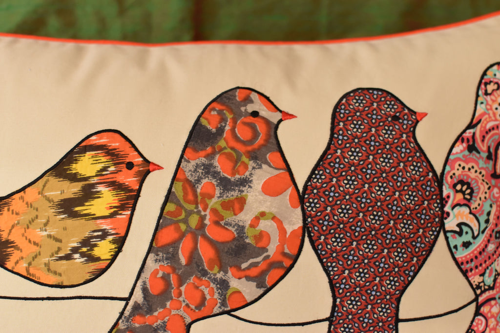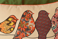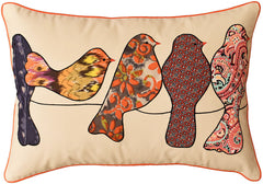 Lumbar Beige Birds On Wire I Decorative Pillow Cover Cotton Applique 14"x20"