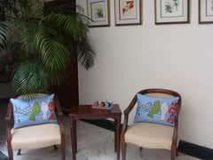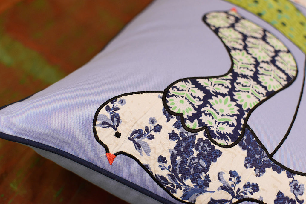 The Tree of Life branching up to the sky with and its roots in the earth, this all natural bleu de France ( cornflower blue) color decorative pillow cover with a bird offers a dramatic yet spiritual accent to any room. The entire twill cotton base of the pillow is overlaid with applique and embroidery work, creating an extraordinary show piece for your decor. This is world-class workmanship created to enhance your world with dynamic color and unique stylized motifs.