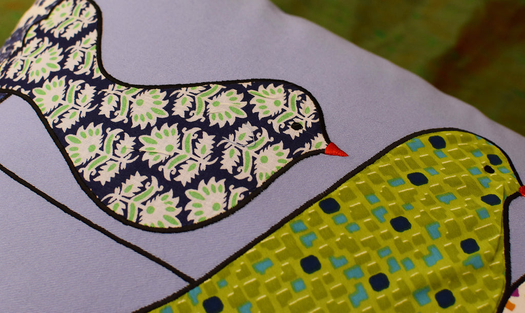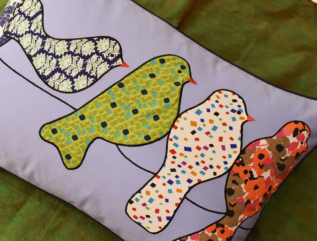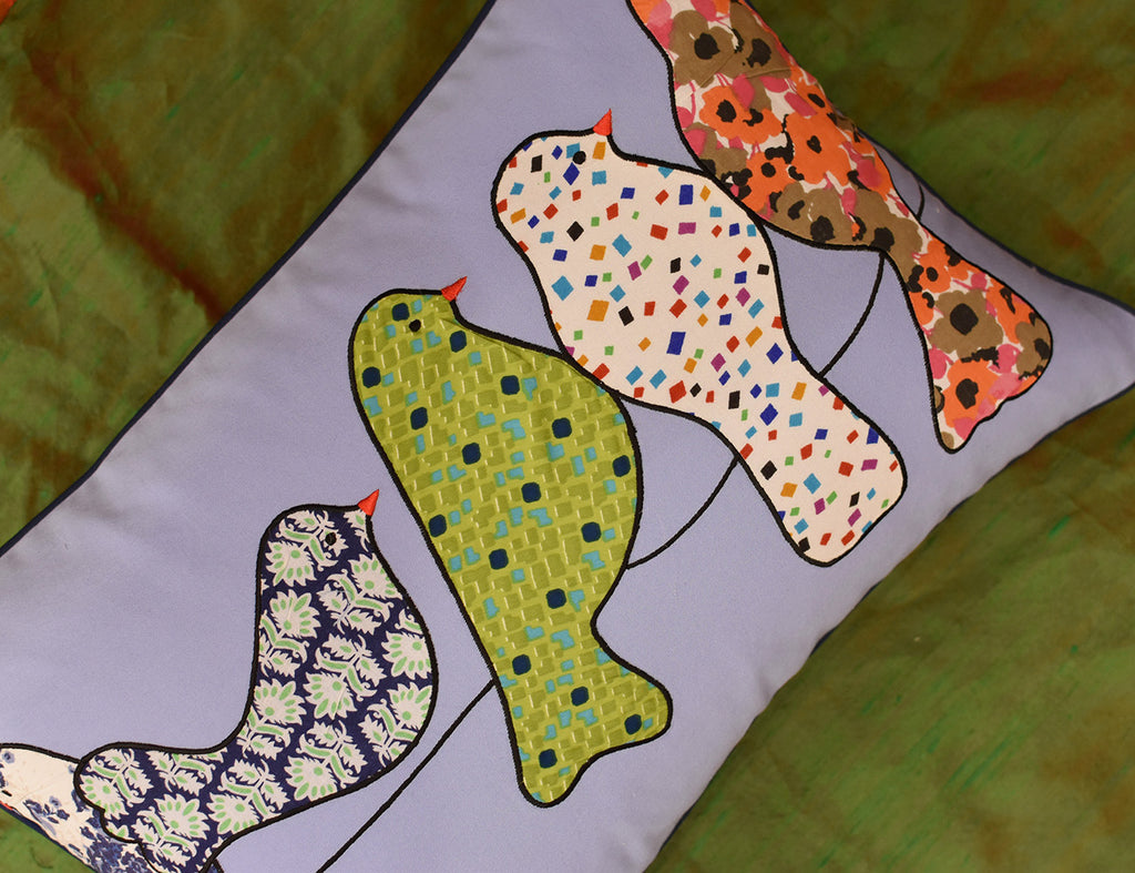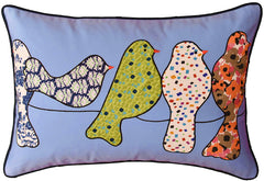 Lumbar Blue Birds On Wire Decorative Pillow Cover Cotton Applique Work 14"x20"