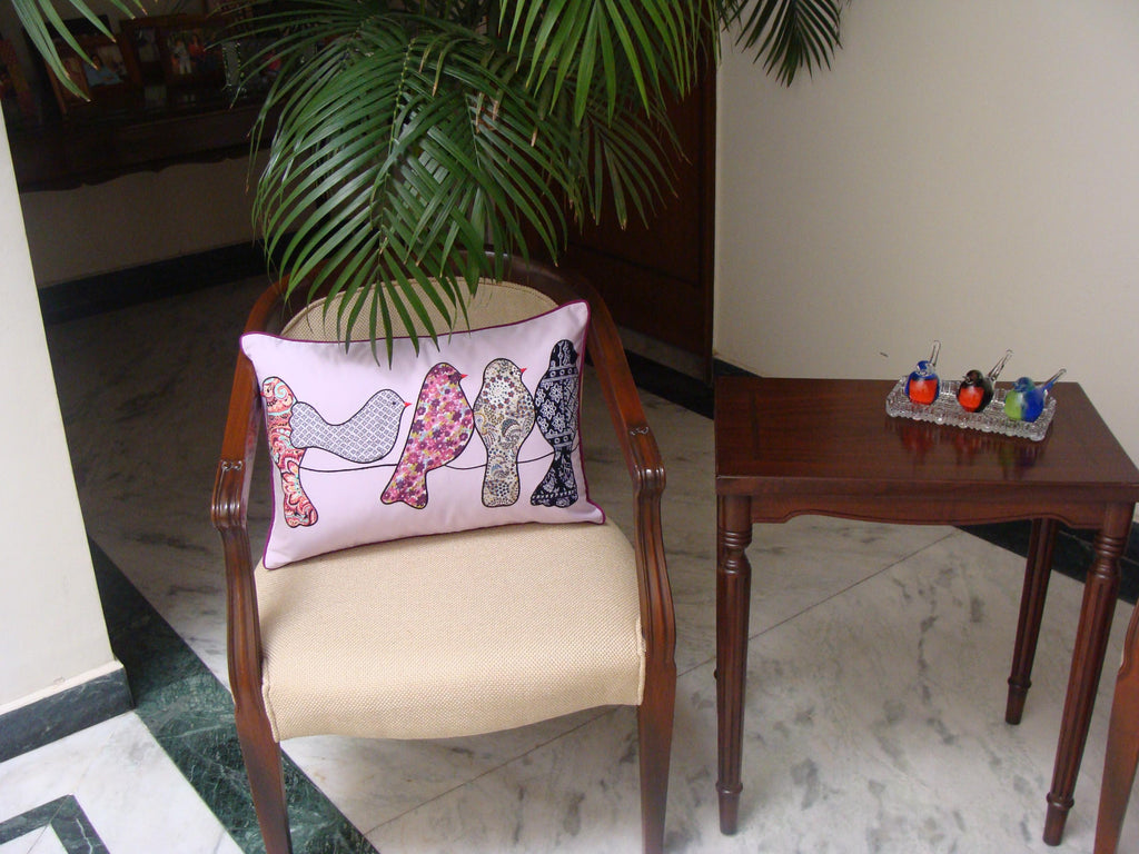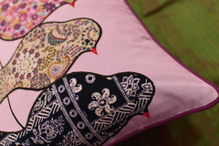 The Tree of Life branching up to the sky with and its roots in the earth, this all light lavender lilac decorative pillow cover with a bird offers a dramatic yet spiritual accent to any room. The entire twill cotton base of the pillow is overlaid with applique and embroidery work, creating an extraordinary show piece for your decor. This is world-class workmanship created to enhance your world with dynamic color and uniqye stylized motifs.