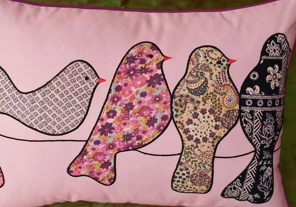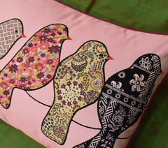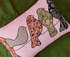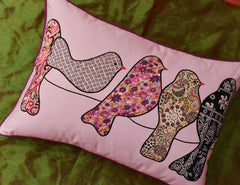 Lumbar Lavender Birds On Wire Decorative Pillow Cover Cotton Applique 14"x20"