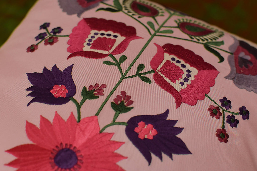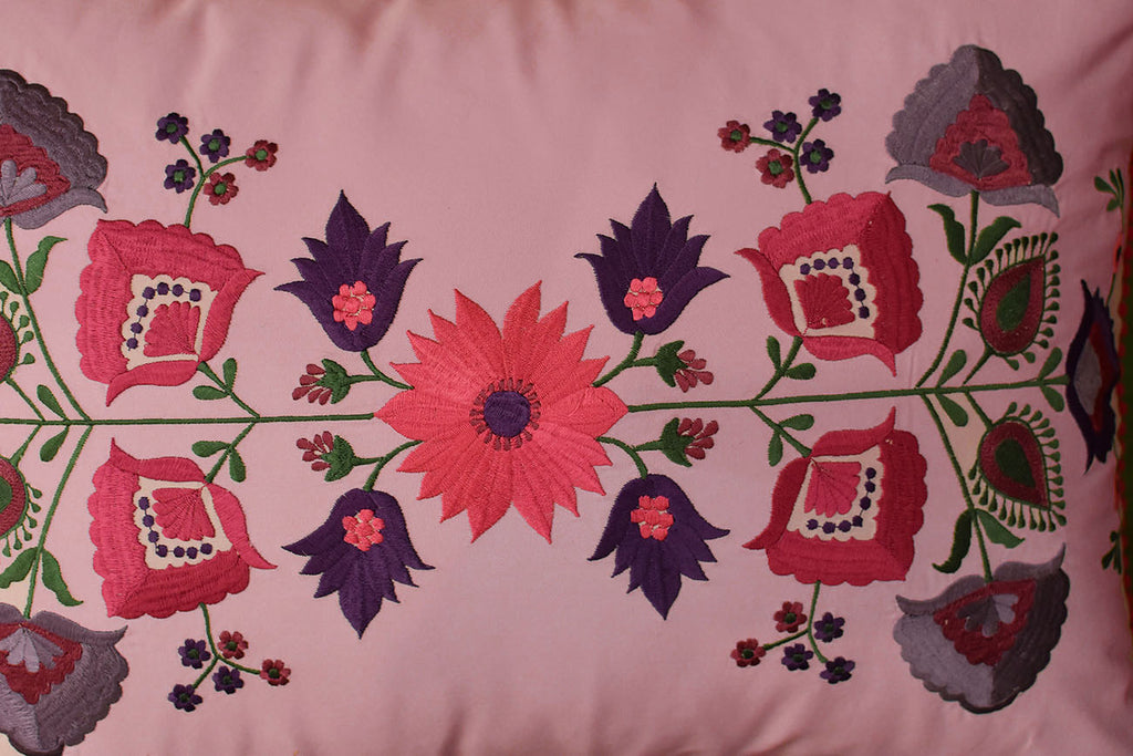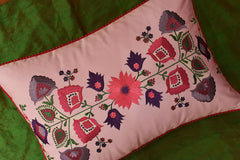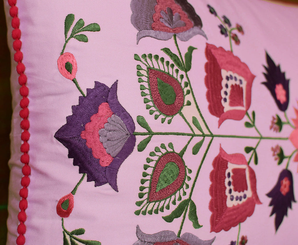 Lumbar Lavender Floral Cotton Decorative Pillow Cover Silk Embroidery  14"x20" - KashmirDesigns