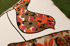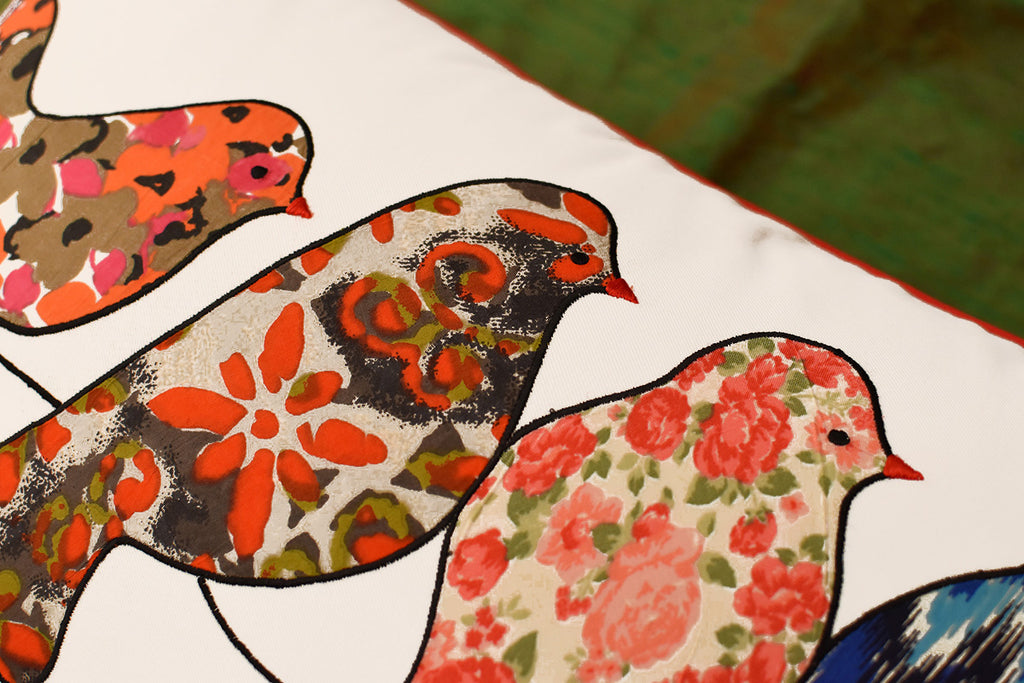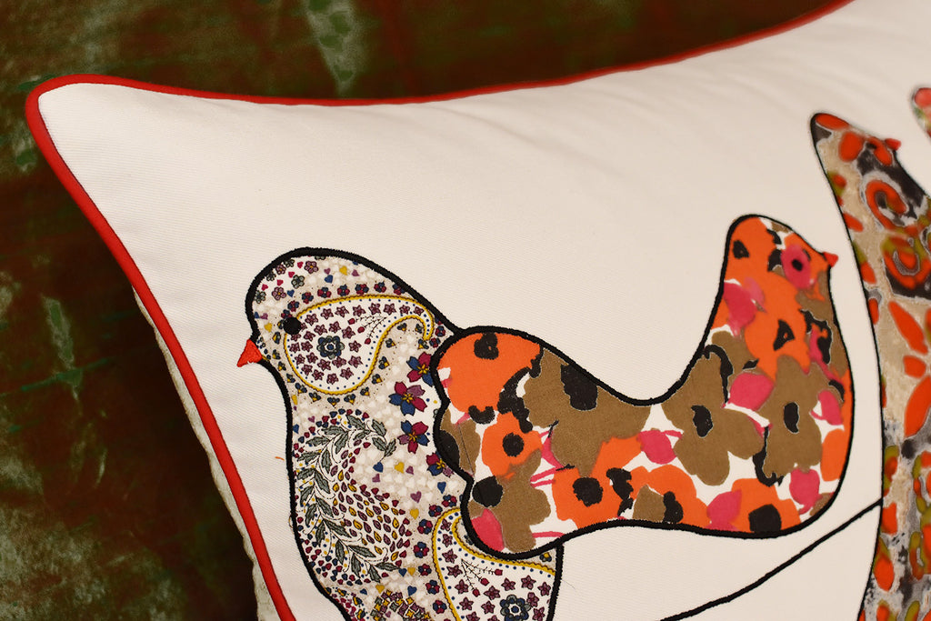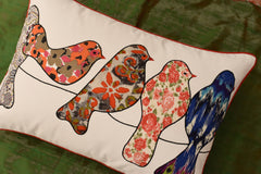 Lumbar White Birds On Wire Decorative Pillow Cover Cotton Applique Work 14"x20"