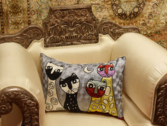 Lumbar Picasso Light Blue Four Cats Rectangle Pillow Cover Art Silk 14x20"