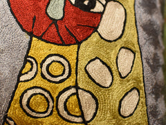 A close-up view of this abstract pillow cover allows you to see the amazing chain-stitch embroidery work of master artisans who have practiced this art their entire lives.This abstract decorative pillow cover could grace the cabin of your boat or the chair in your solarium and yet be equally as comfortable in your den.