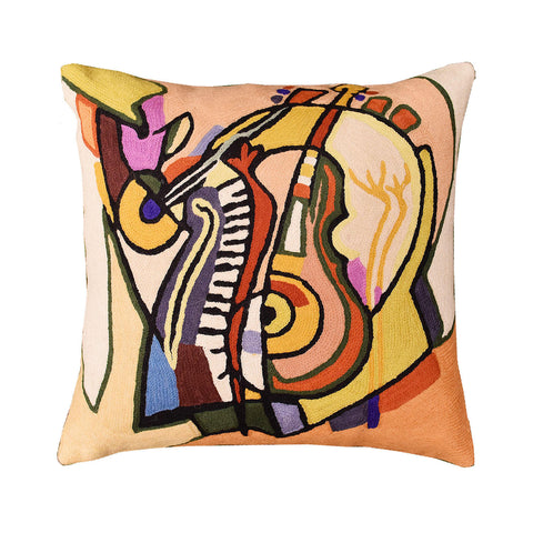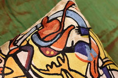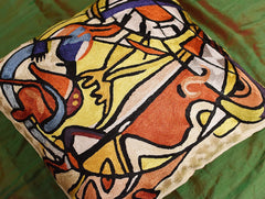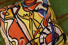 Kashmiri craftsmen produce the finest quality chain stitch needlework in the world. This abstract decorative pillow cover could grace the cabin of your boat or the chair in your solarium and yet be equally as comfortable in your den. Durable and easy to clean, this toss pillow will catch the eye of every passerby. The eye-popping color and pattern of this modern throw pillow are just what the designer ordered to create a fiery focal point in your decor. Perfect wherever you need a splash of color, this art work pillow creation is as durable as it is beautiful. Easy to care for, this cushion cover could spark up an old throw pillow or grace a new pillow form. World-renowned artist Alfred Gockel was born in 1952 near Munster, Germany. His artwork has been showcased in leading exhibitions all over the world. He draws his inspiration