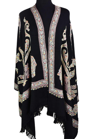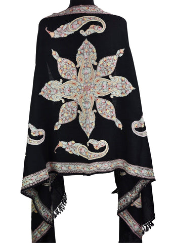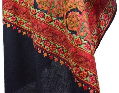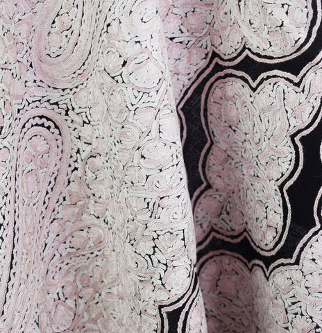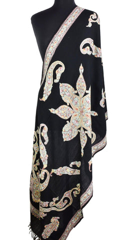 Dione Kashmir Shawl Paisley Black Hand Embroidered Suzani Needlework Wrap 27x76"