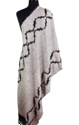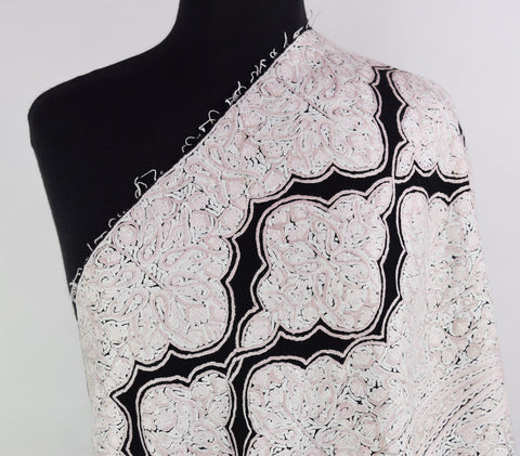 Black White Shawl Hand Embroidered Jamawar Paisley Bridal Stole Needlepoint Suzani Flower Scarves For Women | White Black Wedding Dress Shawls Bridesmaid Wraps | Cashmere Wrap Size 27x76"