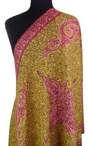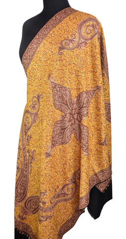 Yellow Gold Shawl Kashmir Jamawar Handembroidered Suzani Needlework Wrap 27x76"