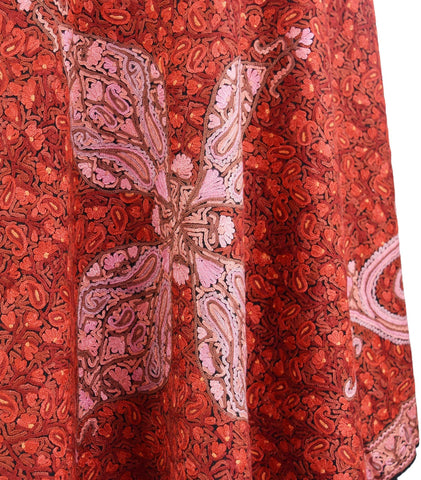Briseis Kashmir Shawl Paisley Red Pink Hand Embroidered Suzani Needlework Wrap 27x76"