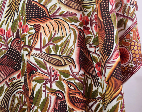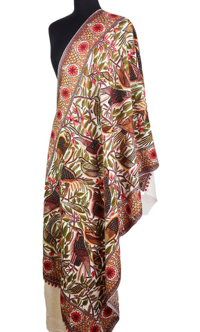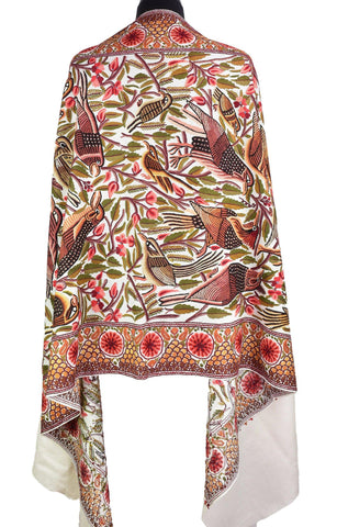 Charis Kashmir Shawl Cream White Birds Hand Embroidered Suzani Needlework Wrap 27x76"