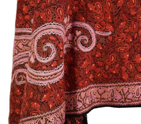 Royal Floral Burgundy Red Jamawar Kashmir Shawl Hand Embroidered Suzani Needlework Wrap 27x76"