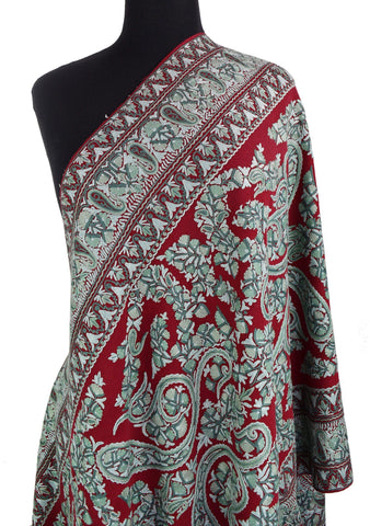 Royal Kalamkaar Red Jamawar Kashmir Shawl Hand Embroidered Suzani Needlework Wrap 27x76"