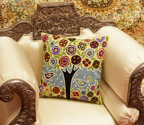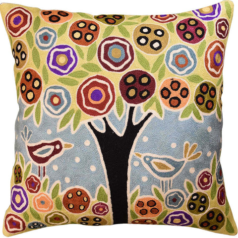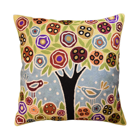 This contemporary throw pillow cover is hand embroidered by the finest artisans. Unique design and soulful colors make this accent pillow cover artful and must for any modern home. Wherever you place this accent pillow indoors or outdoors, it is sure to draw attention and create a vibrant point of interest for your decor.This toss pillow cover could grace the cabin of your boat or the chair in your solarium and yet be equally as comfortable in your office or den. Durable and easy to clean, this accent pillow will catch the eye of every passerby.The Kashmir wool thread makes it soft to the touch, and the texture of the all natural wool hand embroidery is a sensory delight and makes an enduring impression.