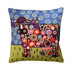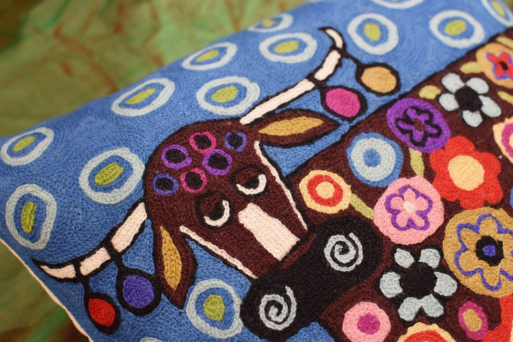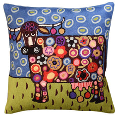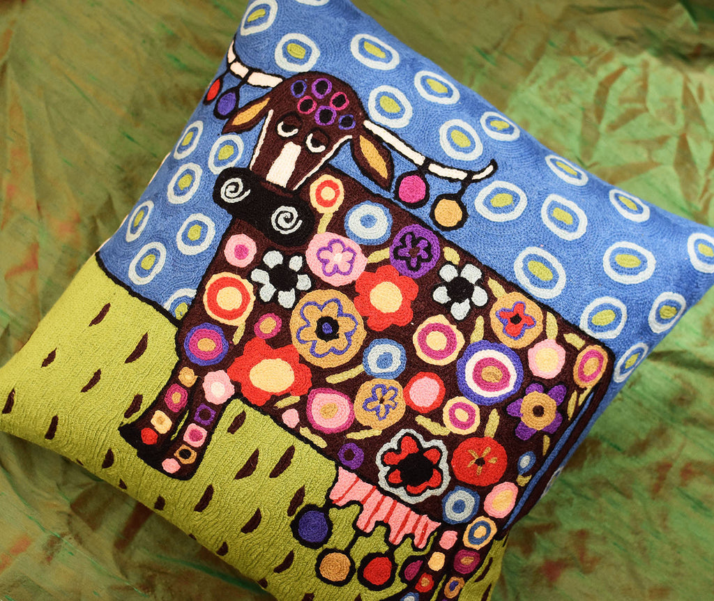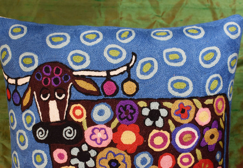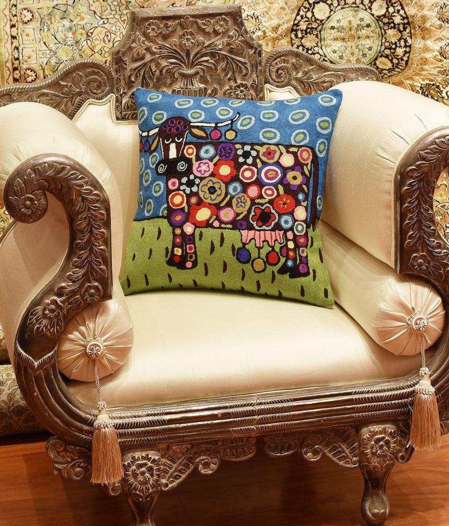 Blooming Cow Karla Gerard Decorative Pillow Cover Handembroidered Wool 18"x18"