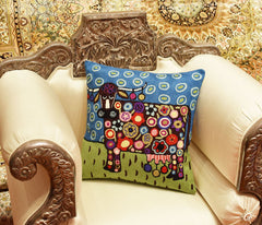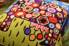 This contemporary throw pillow cover is hand embroidered by the finest artisans. Unique design and soulful colors make this accent pillow cover artful and must for any modern home. Wherever you place this accent pillow indoors or outdoors, it is sure to draw attention and create a vibrant point of interest for your decor.This toss pillow cover could grace the cabin of your boat or the chair in your solarium and yet be equally as comfortable in your office or den. Durable and easy to clean, this accent pillow will catch the eye of every passerby.The Kashmir wool thread makes it soft to the touch, and the texture of the all natural wool hand embroidery is a sensory delight and makes an enduring impression.