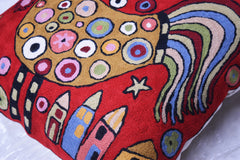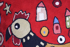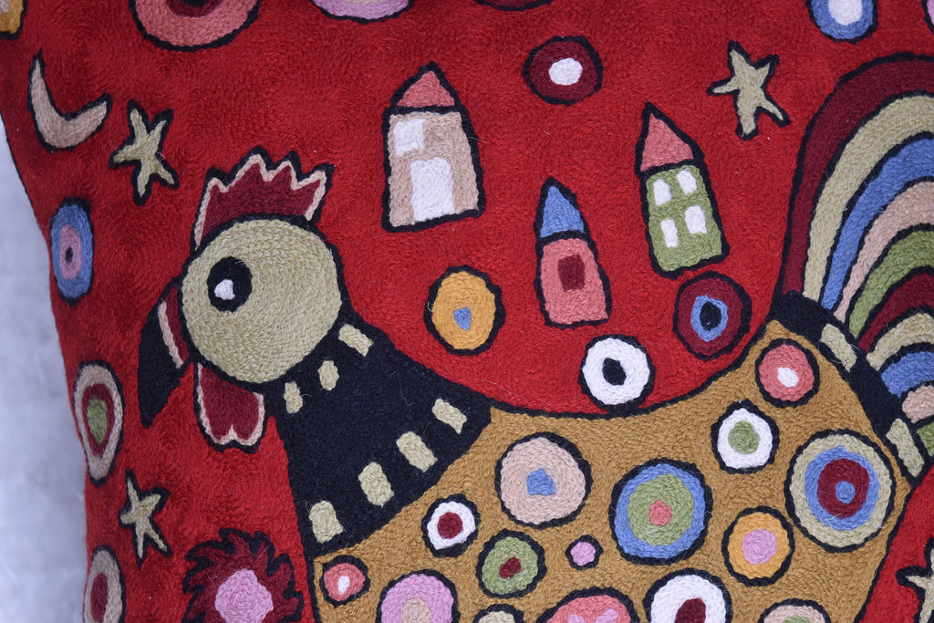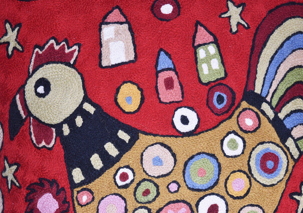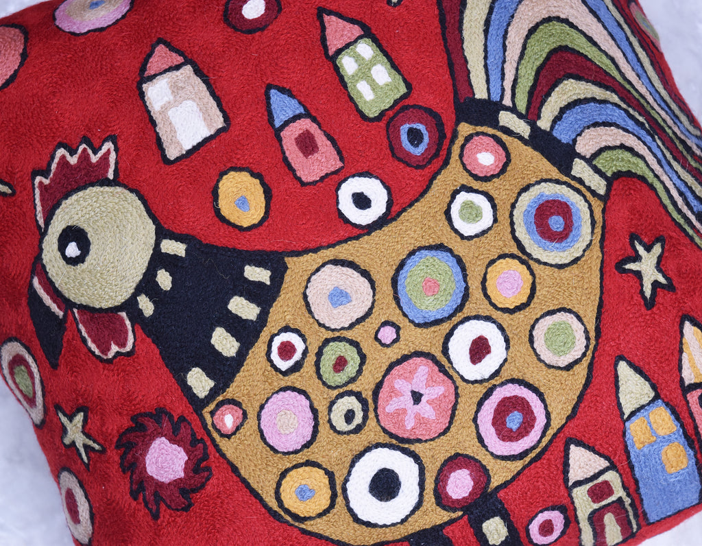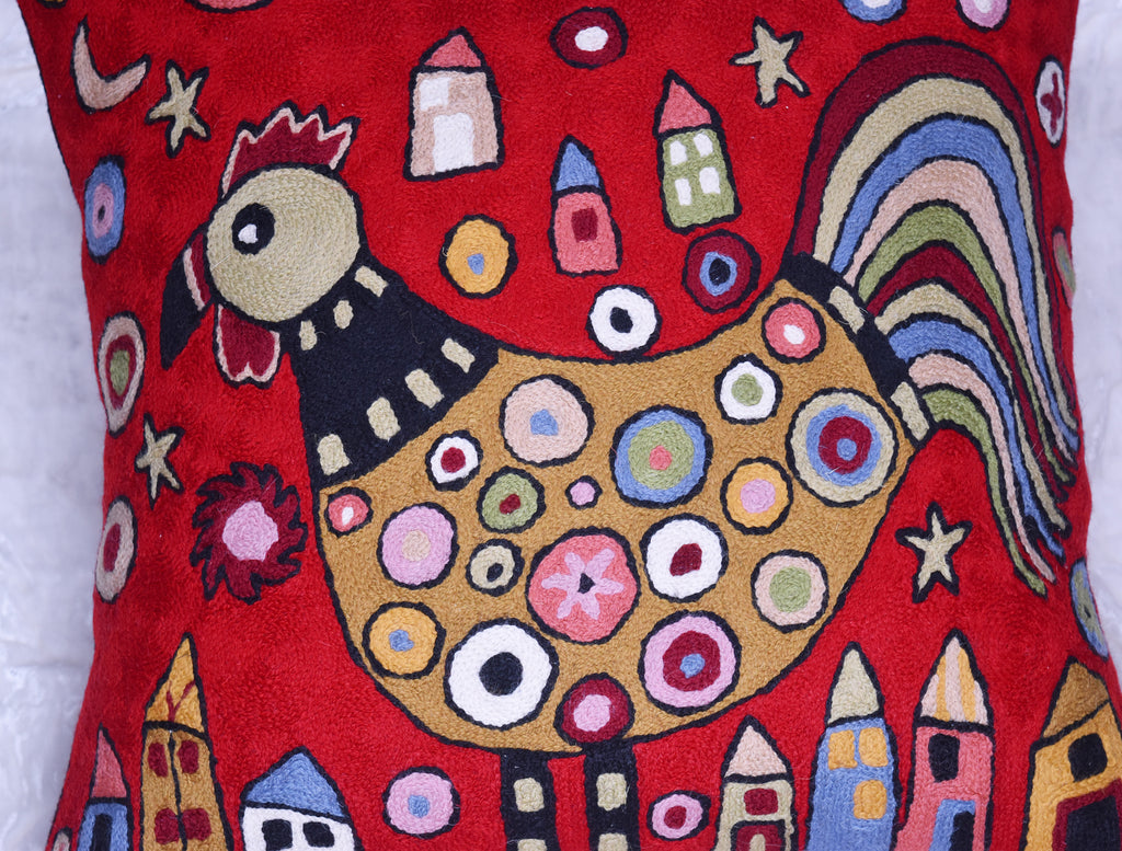Red Rooster Accent Pillow Cover Bird Cockerel Decorative Pillowcase Karla Gerard Farmhouse Sofa Cushions Hand Embroidered Wool 18x18