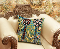 This whimsical folk art design decorative pillow cover has a curious deer and birds with fabulous colorful trees and foliage with unique shapes and patterns throughout. It would look great in a cabin, cottage,camp, childs room, or anywhere you need a touch of color.