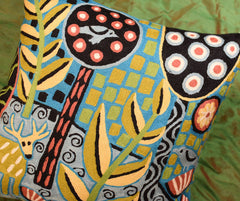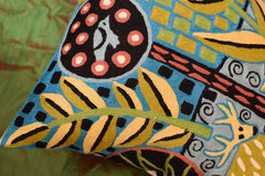 This contemporary throw pillow cover is hand embroidered by the finest artisans. Unique design and soulful colors make this accent pillow cover artful and must for any modern home. Wherever you place this accent pillow indoors or outdoors, it is sure to draw attention and create a vibrant point of interest for your decor.This toss pillow cover could grace the cabin of your boat or the chair in your solarium and yet be equally as comfortable in your office or den. Durable and easy to clean, this accent pillow will catch the eye of every passerby.The Kashmir wool thread makes it soft to the touch, and the texture of the all natural wool hand embroidery is a sensory delight and makes an enduring impression.