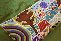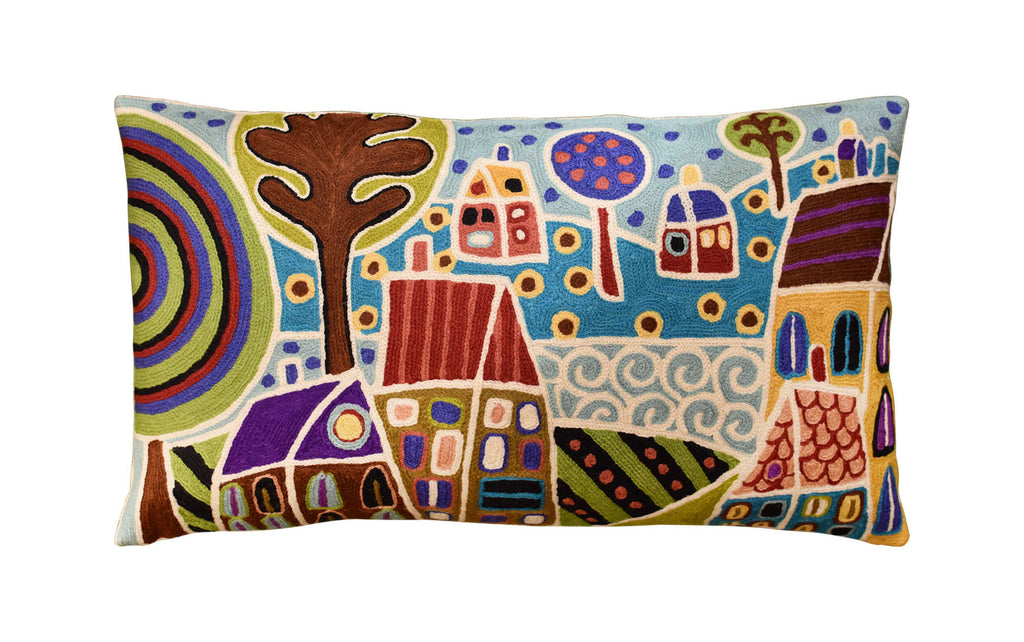 Houses & Trees By Water Karla Gerard Pillow Cover Handembroidered Wool 14"x24"