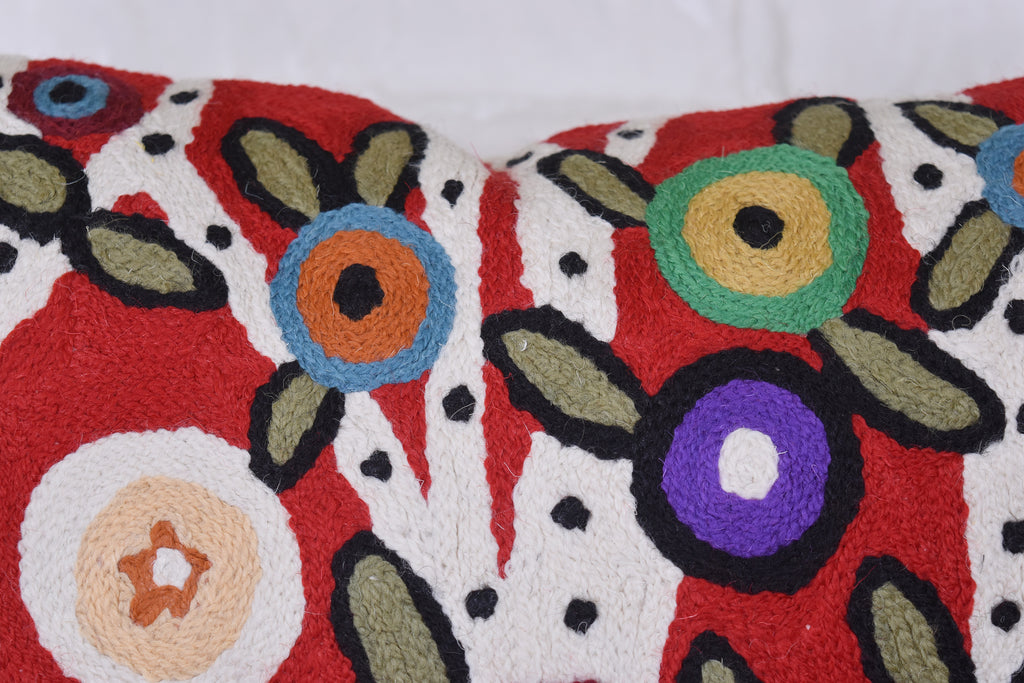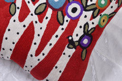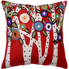 Red Decorative Pillow Cover Spring Tree of Life Karla Gerard Sofa Throw Cushions Hand Embroidered Wool 18x18