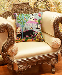 This contemporary throw pillow cover is hand embroidered by the finest artisans. Unique design and soulful colors make this accent pillow cover artful and must for any modern home. Wherever you place this accent pillow indoors or outdoors, it is sure to draw attention and create a vibrant point of interest for your decor.This toss pillow cover could grace the cabin of your boat or the chair in your solarium and yet be equally as comfortable in your office or den. Durable and easy to clean, this accent pillow will catch the eye of every passerby.The Kashmir wool thread makes it soft to the touch, and the texture of the all natural wool hand embroidery is a sensory delight and makes an enduring impression.