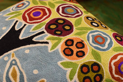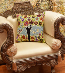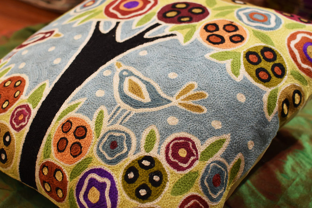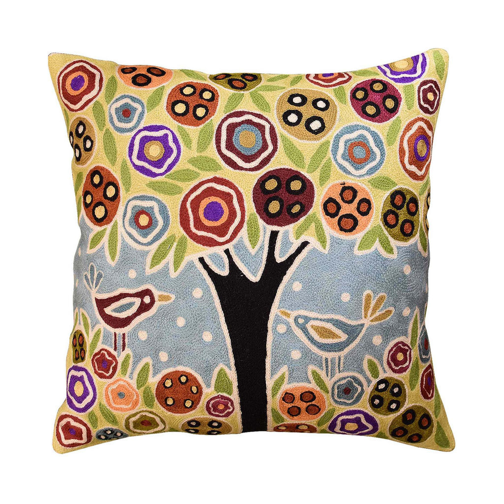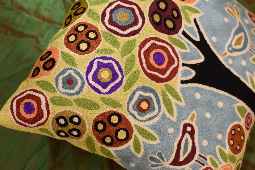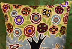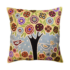 Tree & 2 Birds in Bloom Karla Gerard Pillow Cover Handembroidered Wool 18"x18"