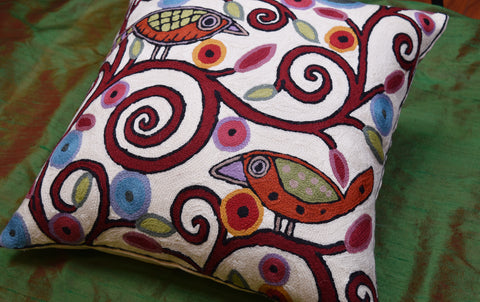 These modern pillow covers are handcrafted by Kashmiri artisans, and are of the finest chain-stitch embroidery in the world.Created of soft Kashmir wool over cotton, this all-natural cover makes an enduring impression.