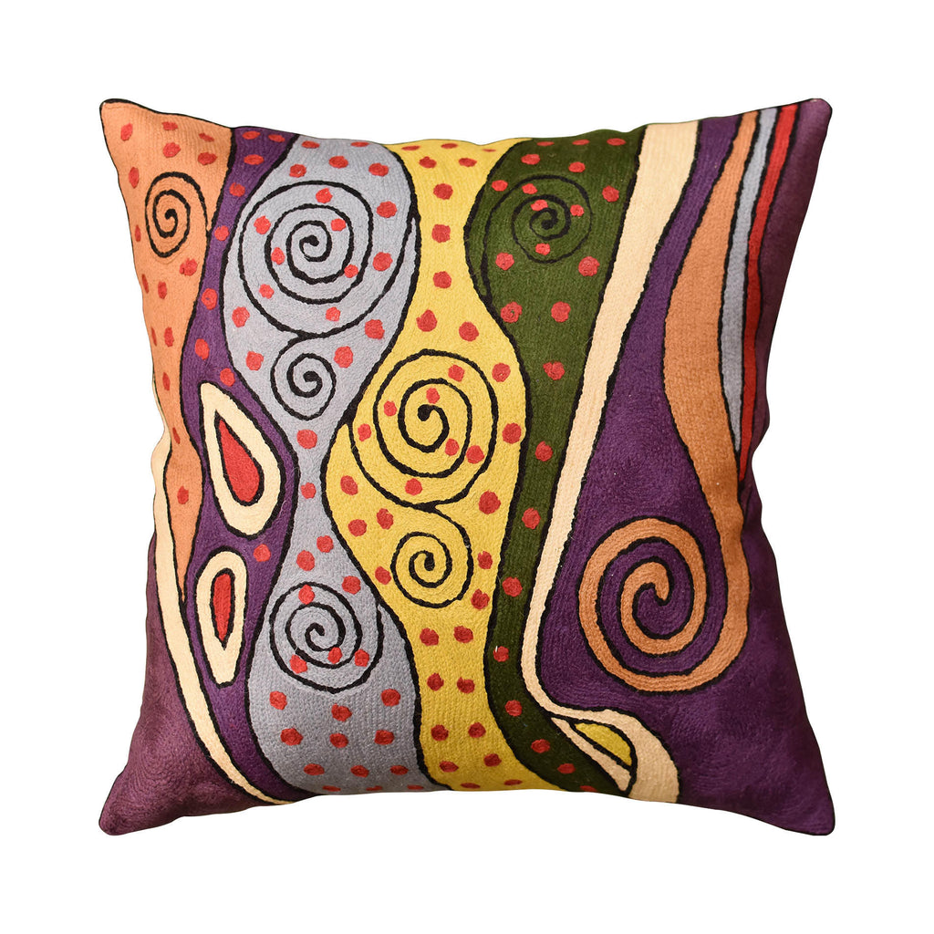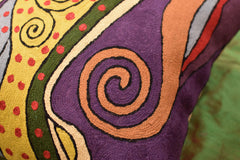 These unique, seamless and modern pillow covers would bring together the artistic elements of any room, creating a harmonious design and perfect air of sophistication.This decorative cushion cover has beautiful Purple color balance by light blue, green, orange and yellow color tones and design hand embroidered in an artistic pattern which flows seamlessly over the whole pillow.
