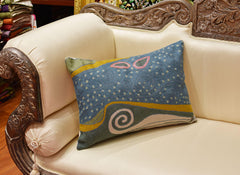 These unique, seamless and modern pillow covers would bring together the artistic elements of any room, creating a harmonious design and perfect air of sophistication.This decorative cushion cover has beautiful Sky Blue and design hand embroidered in artistic vector pattern which flows seamlessly over the whole pillow.