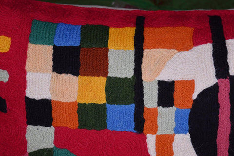 Kashmir Designs Kandinsky Decorative Pillow Cover Red Painting Abstract Cushion Wool HandEmbroidered 14x20