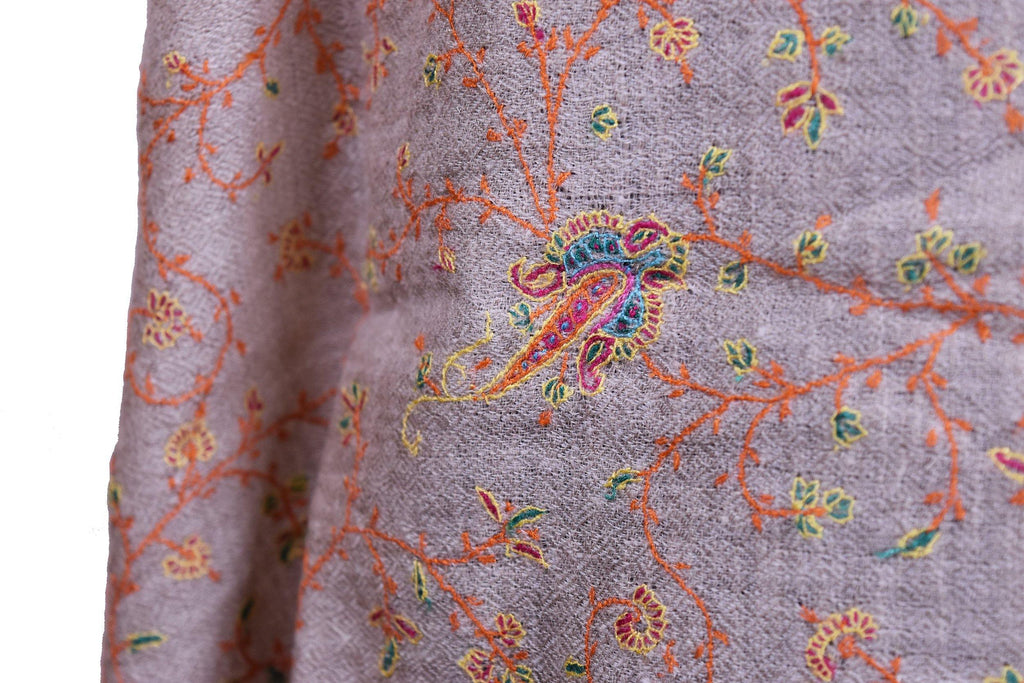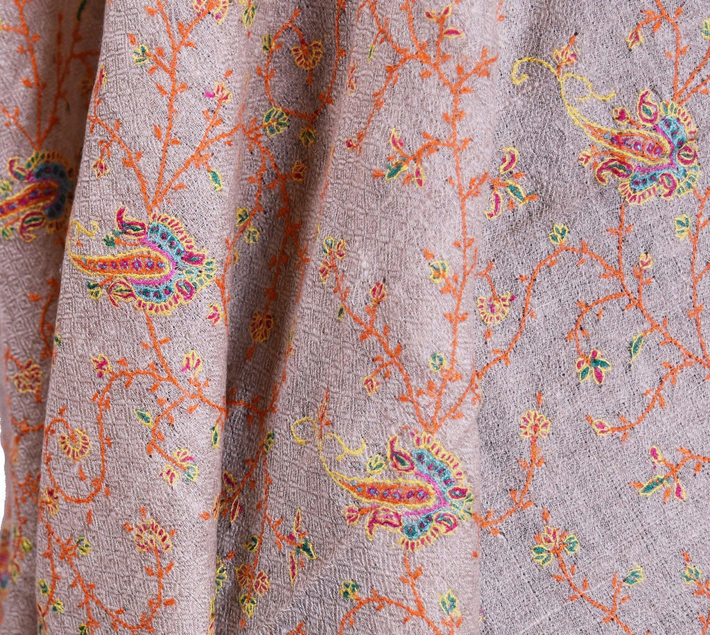 Hestia Pashmina Shawl Natural Antelope Handloom Suzani Needlework Wrap 27x76”