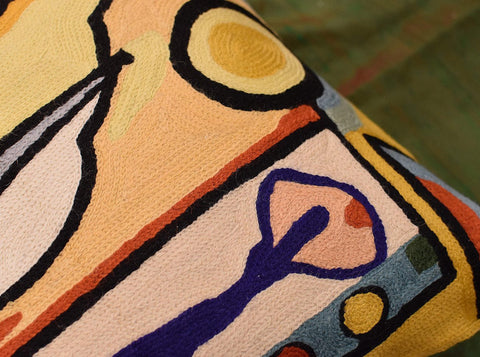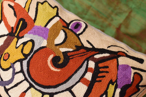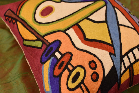 Bass Dance by Alfred Gockel Accent Pillow Cover-Handembroidered Wool 18" x 18"