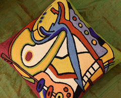 Bass Dance by Alfred Gockel Accent Pillow Cover-Handembroidered Wool 18" x 18"