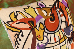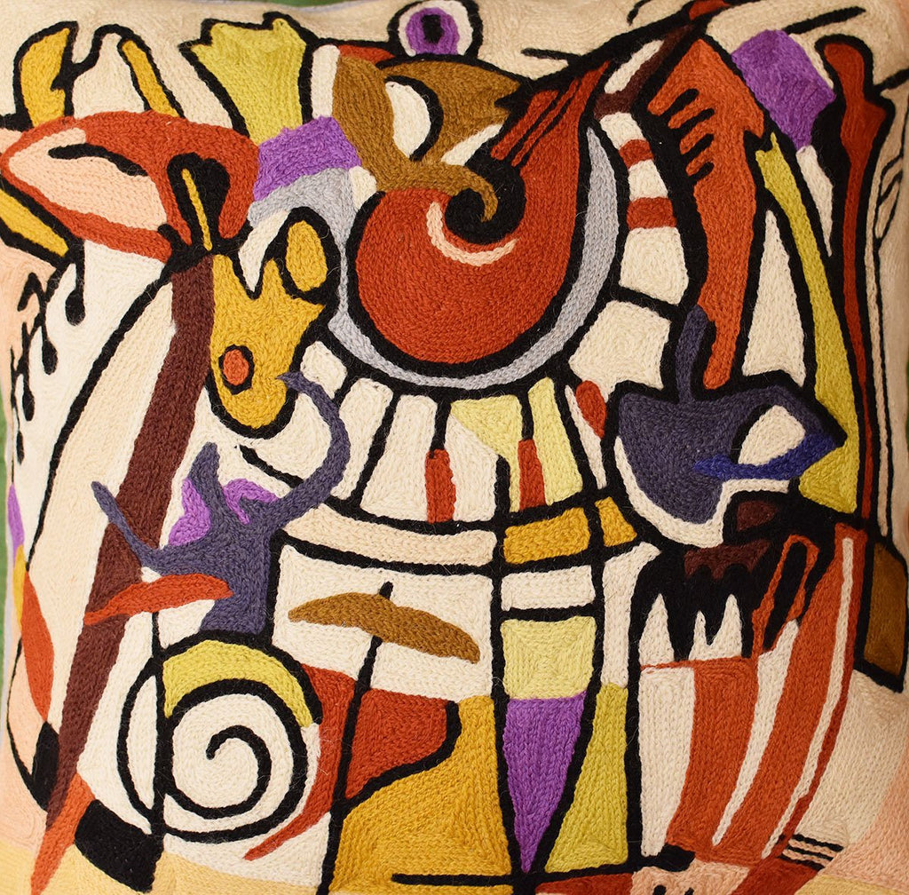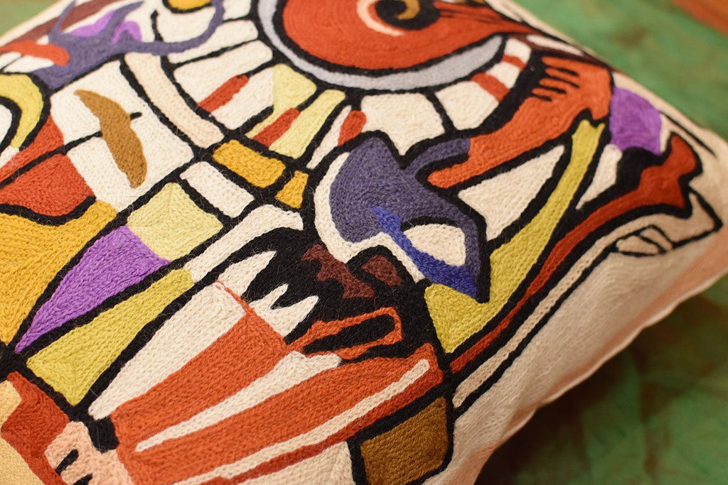 Kashmir is proud to bring together the modern abstract artwork pillow collection, inspired by world renowned artist Alfred Gockel and hand embroidered by the finest artisans of Kashmir, into the living spaces of patrons and connoisseur's all around the world. These unique and modern pillows would bring the brighter elements of any room, creating a harmonious design and perfect air of sophistication. This decorative Cushion Cover Django's Legacy throw pillow cover has beautiful colors and design hand embroidered in lively and refreshing colors. Swirls of colorful chain stitch embroidery hand embroidered from soft Kashmir wool adds a dazzling sheen to the creation. The eye-popping color and pattern of this creation is just what the designer ordered to create a fiery focal point in your decor. This all-natural accent pillow cover makes an enduring impression.