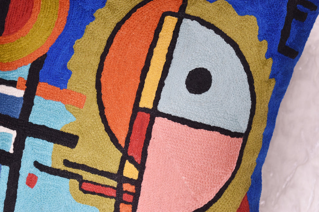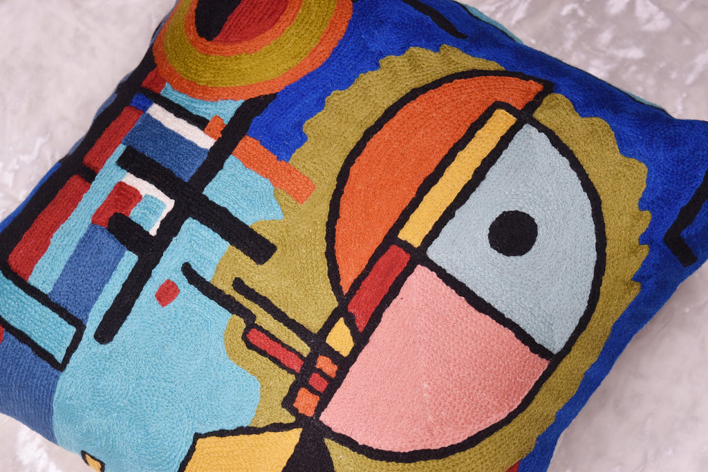 With our Kandinsky-inspired hand-embroidered decorative pillow covers, your home becomes a canvas for artistic elegance. Embrace the power of modern art, and let your decor speak volumes about your unique style and appreciation for the bold and the beautiful. Elevate your living spaces today!