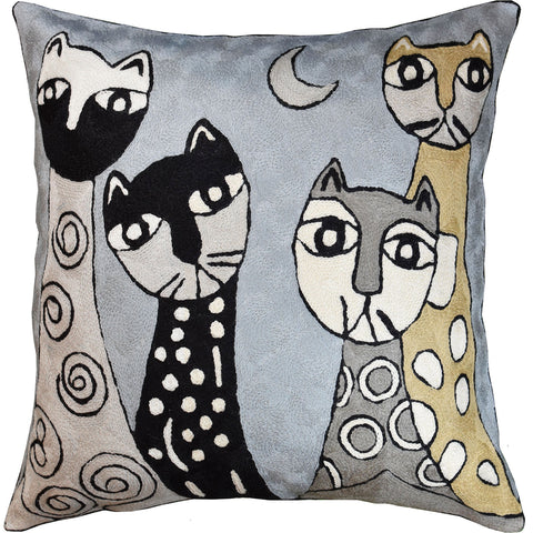 This contemporary throw pillow cover is hand embroidered by the finest artisans. Unique design and soulful colors make this accent pillow cover artful and must for any modern home. Wherever you place this accent pillow indoors or outdoors, it is sure to draw attention and create a vibrant point of interest for your decor.This toss pillow cover could grace the cabin of your boat or the chair in your solarium and yet be equally as comfortable in your office or den. Durable and easy to clean, this accent pillow will catch the eye of every passerby.The Kashmir wool thread makes it soft to the touch, and the texture of the all natural wool hand embroidery is a sensory delight and makes an enduring impression.