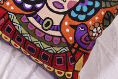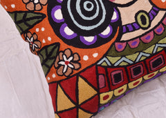 This folklore Mexican artwork colorful pillow cover has refreshing design and is hand embroidered by the finest artisans in unique style and design. In the Mexican style the pattern is done in striking bright colors. This decorative pillow cover is Whimsical and is perfect to spice up your decor in color and design and would make an enticing accent pillow for your home. This would go well with other Western Art, tossed onto a leather couch or chair, or paired with other, similarly colored pieces, the cushion tying it all together.