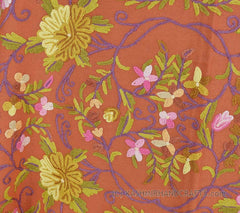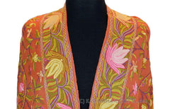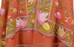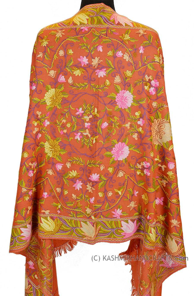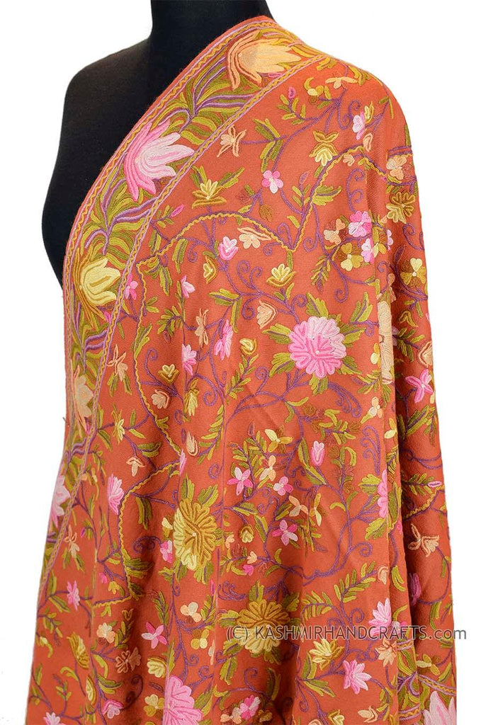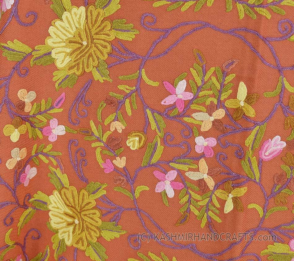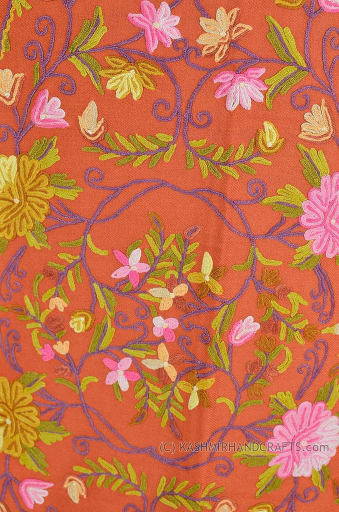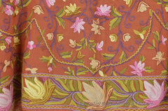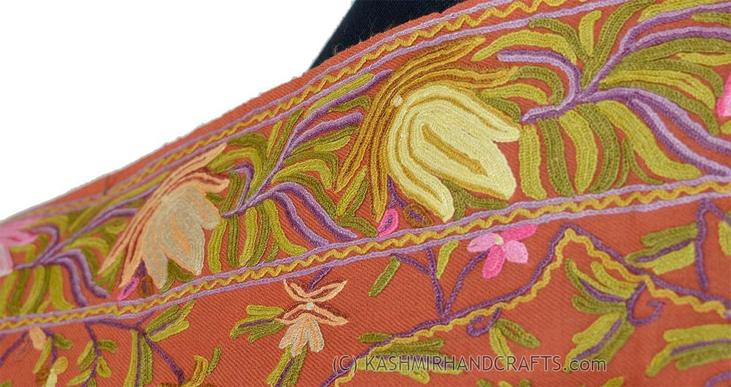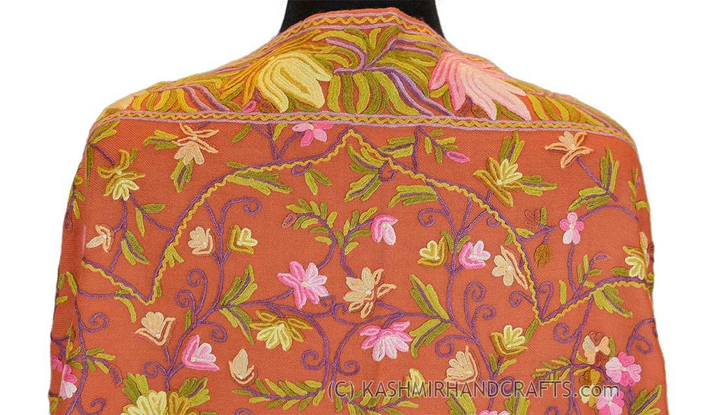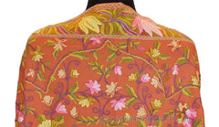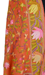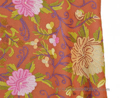 Coral Terracotta Floral Kashmir Shawl Hand Embroidered Suzani Needlework Wrap 27x76"