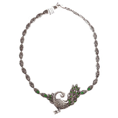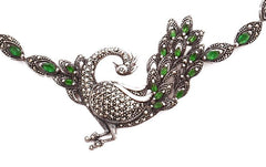 Green Quartz Peacock Necklace Marcasite Choker 925 Sterling Silver Natural Gemstones Handcrafted