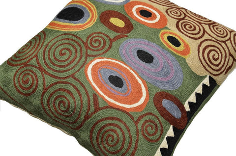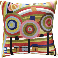 Hundertwasser Beloved Garden Decorative Pillow Cover Handembroidered Wool 18x18"